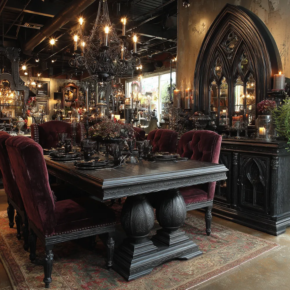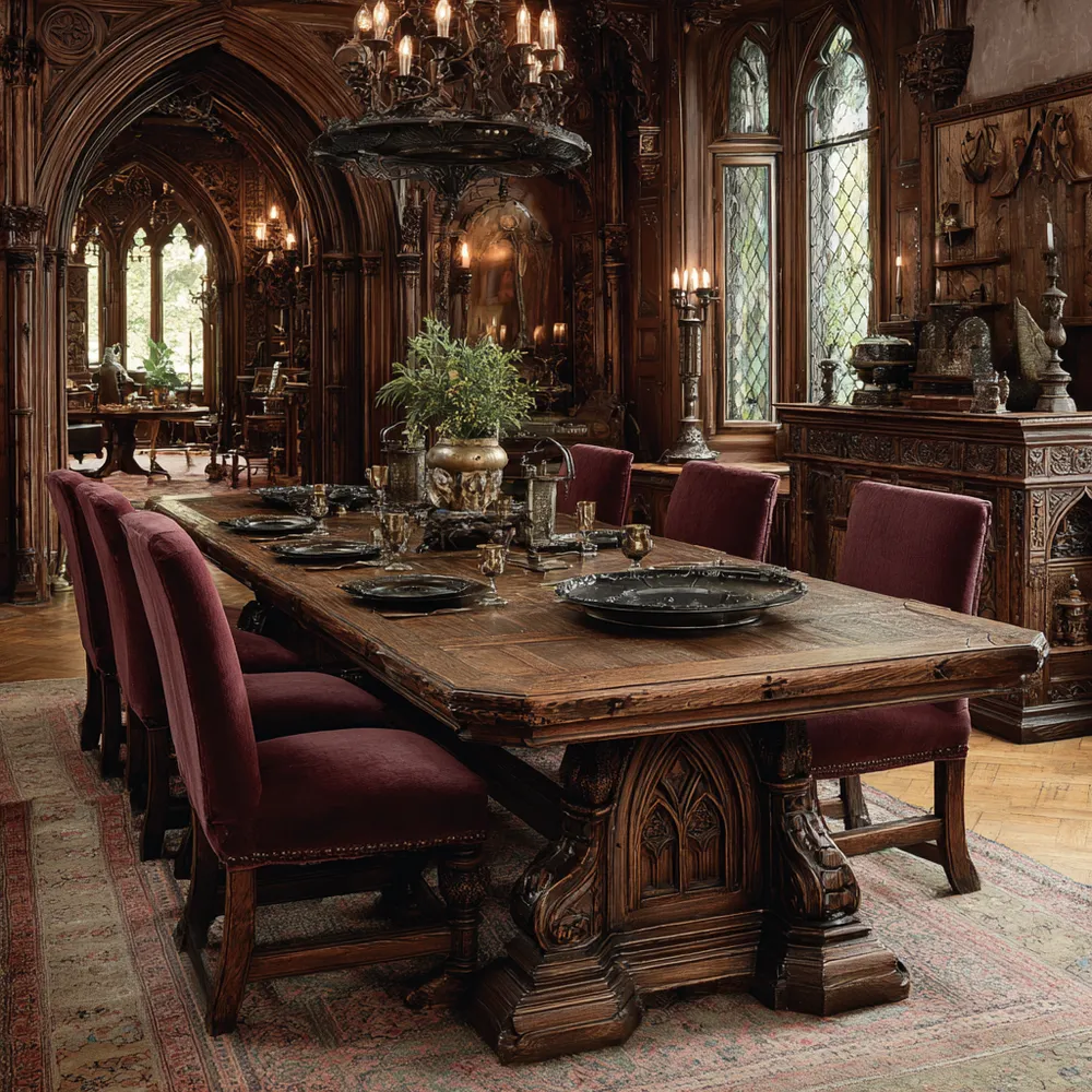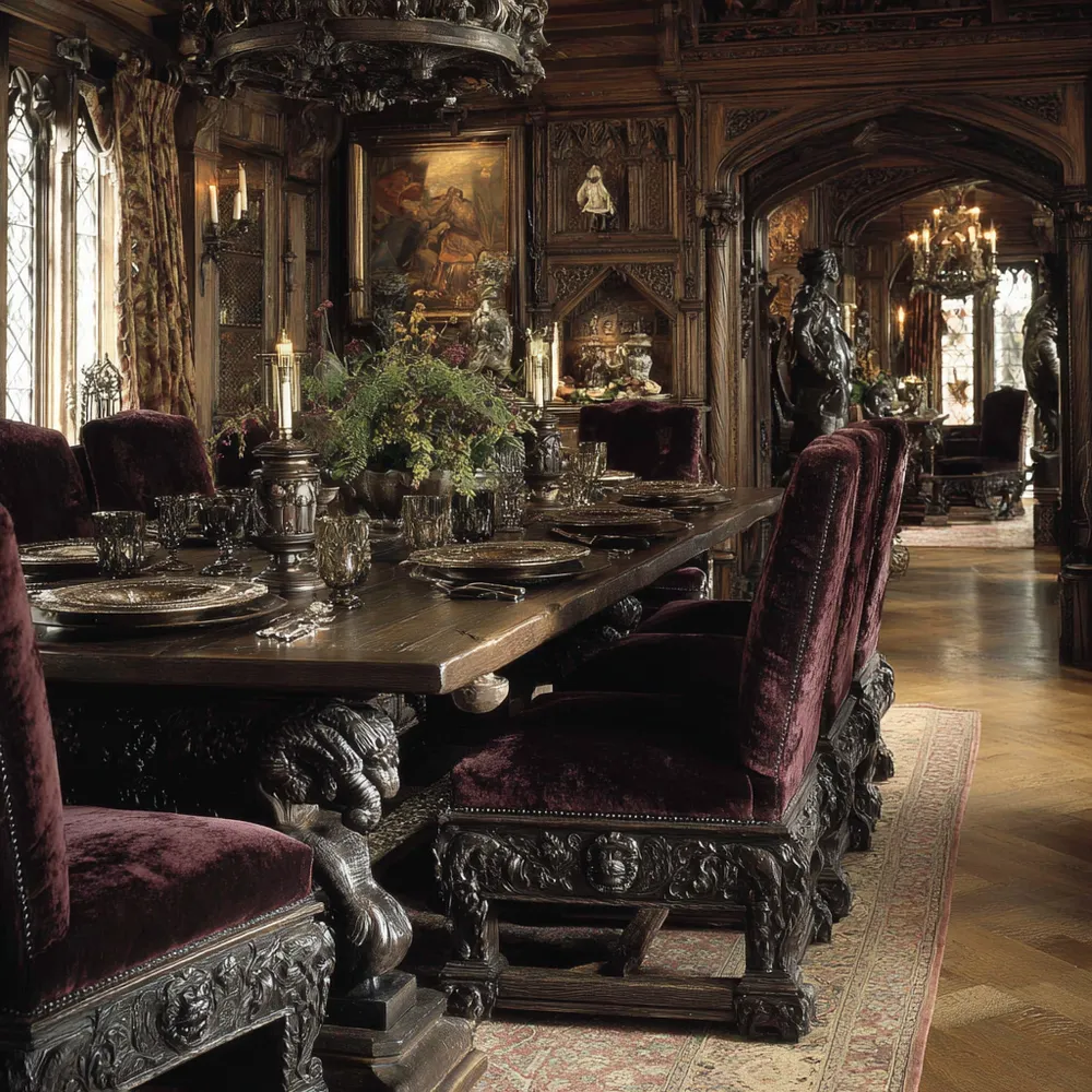 Gothic Furnishings: Carved Wood & Bold Silhouettes 🦇🌲
