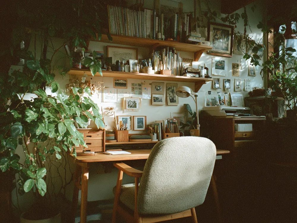 Transform your study into a haven of focus and creativity with the mindful use of natural materials. 🌿 A solid wood desk, perhaps with hand-cut joinery, provides a grounding and inspiring surface. Pair it with a comfortable, ergonomically sound chair upholstered in breathable linen. Natural elements like a potted plant or a wooden desk organizer reduce visual clutter and bring life to the space. The goal is a serene environment that supports deep work and fosters a sense of well-being. Embrace quality and simplicity for your most productive moments. ✨