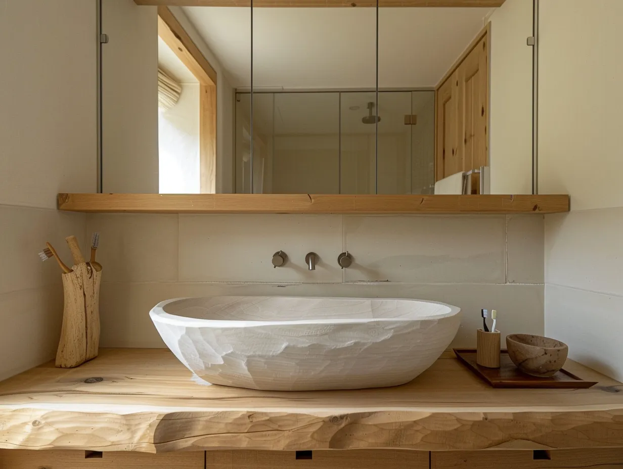 Mindful Materials: Embracing Wood & Stone in Scandi Bathrooms 🛁🪵