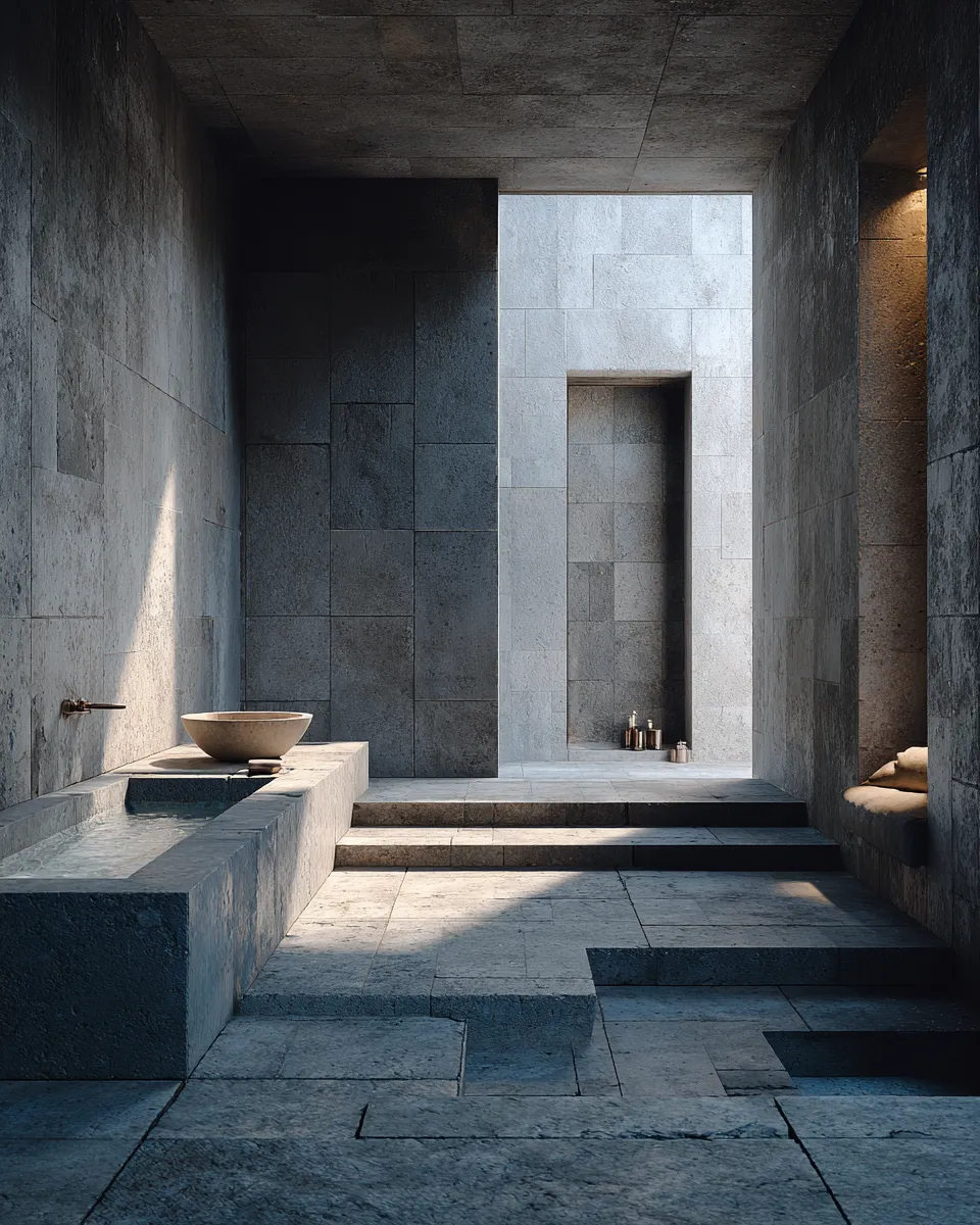 Brutalist Bathroom: Raw Concrete & Sculptural Fixtures 🛁🗿