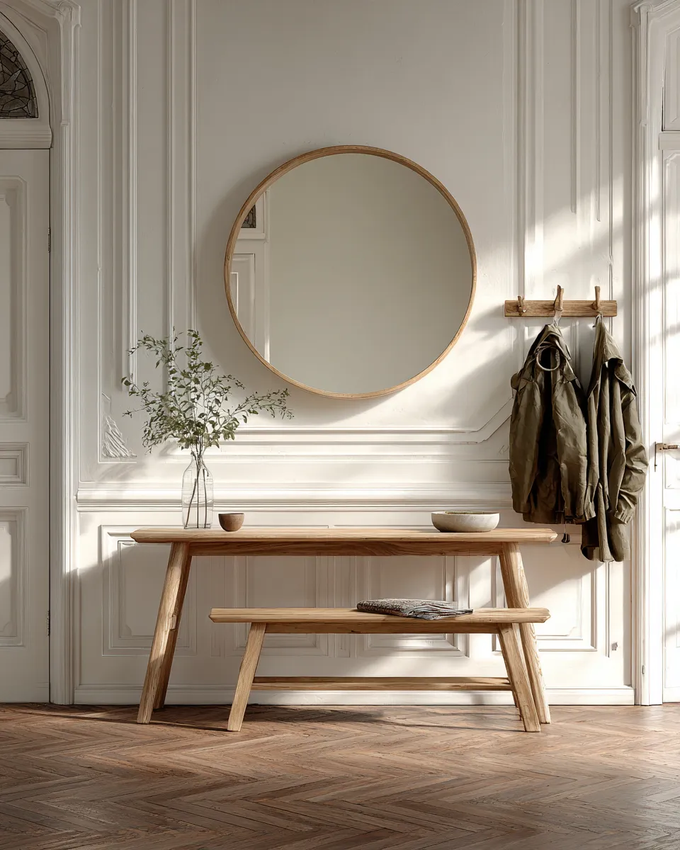 Welcome guests (and yourself!) with calm efficiency. Save this inspo! #ScandiEntrywayIdeas#EntrywayOrganizationIdeas#MinimalistEntrywayIdeas#CityApartmentEntrywayIdeas#ScandinavianStyleIdeas#InteriorDesign#HomeDecor#EntrywayDesign#HomeInspo#DecorTips