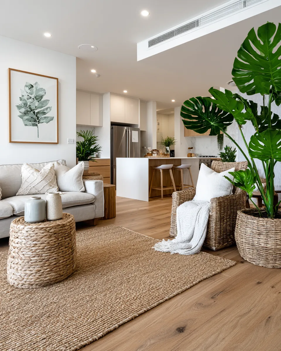- **Natural Materials:** Wood, rattan, cotton, and linen create a relaxed feel.