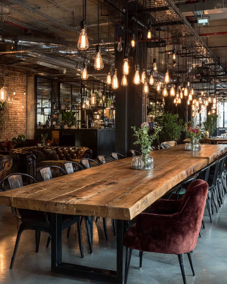 - **Raw Materials:** Exposed brick, concrete floors, or metal accents.