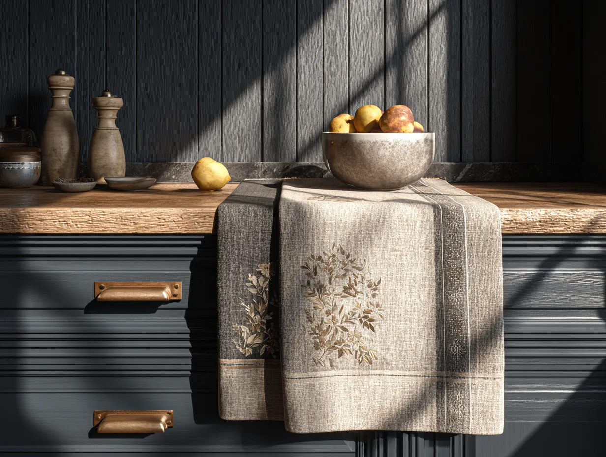 Opt for durable, natural materials like linen or cotton blends in muted tones or subtle geometric prints. They not only look beautiful but are also incredibly practical. These small touches can make cooking and dining feel a little more special and a lot more inviting.