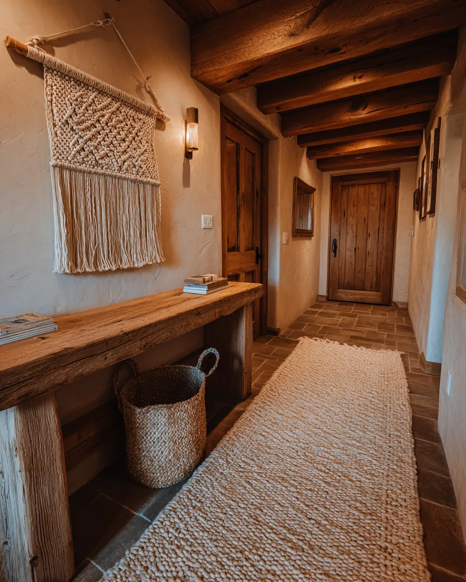 Think a small woven rug runner, a textured wall hanging, or even a woven basket for keys. These elements bring a touch of natural beauty and create a welcoming feel without overcrowding the area. They are a simple yet impactful way to add texture and life. ✨ Save this for your small space styling! 🏡 #SmallSpaceIdeas#WovenDecorIdeas#HallwayDecorIdeas#EntrywayDecor#TextileDecor#HomeStylingTips#DecorInspo#CharmingSpaces#InteriorDesign#CozyCorners
