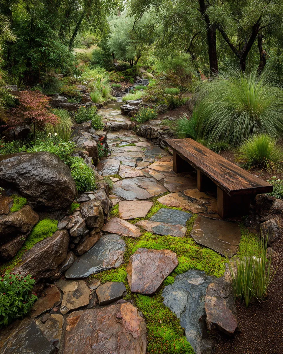 * **Vegetation Integration:** Allow mosses or low-growing plants to grow between stones for a softened effect.