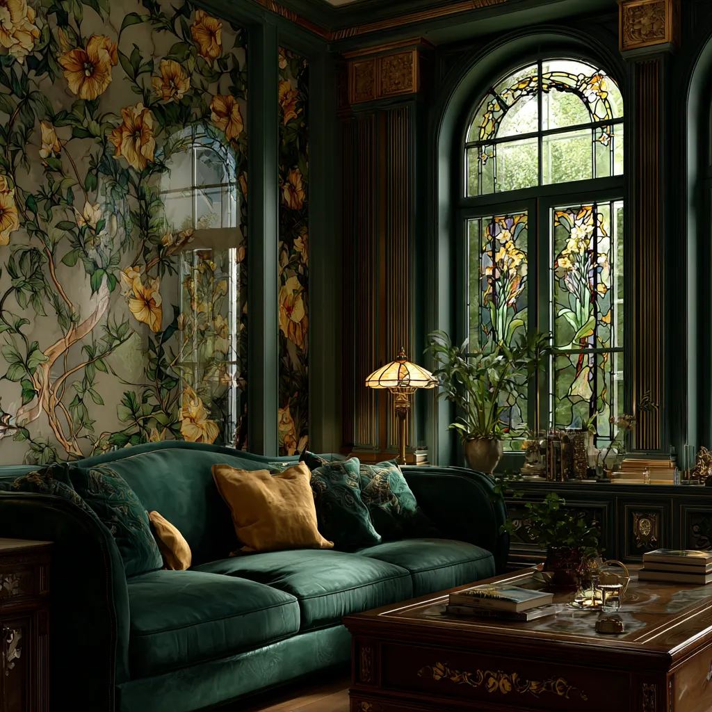 Dreaming of a living room that feels like a secret garden? Art Nouveau's love for nature offers the perfect blueprint! Think flowing floral motifs, organic shapes, and a palette inspired by lush foliage and delicate blooms. 🌸
