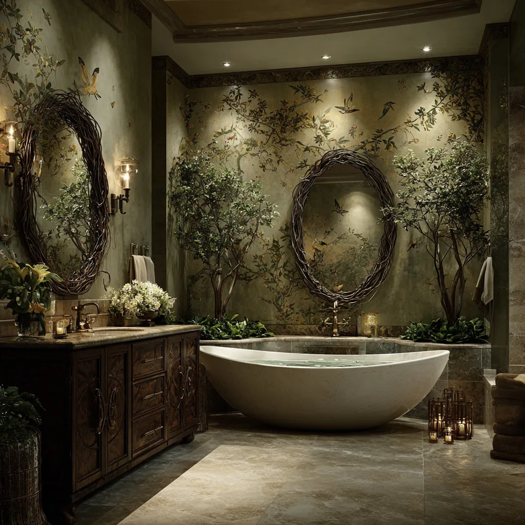 🌿 Mirrors with frames reminiscent of peacock feathers or twisted branches.
