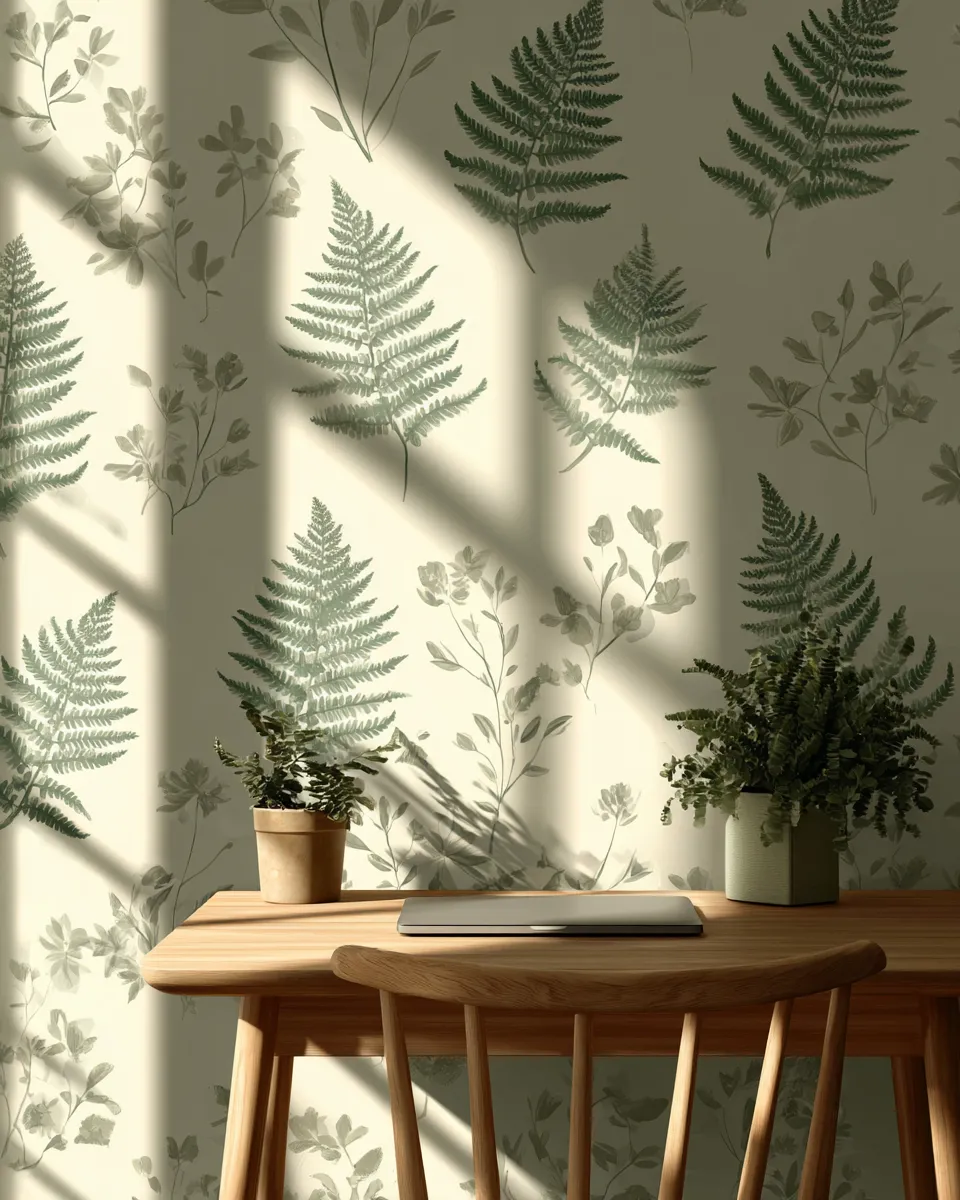 Nature's Touch: Hand-Painted Botanical Details for a Serene Home Office 🌿✏️