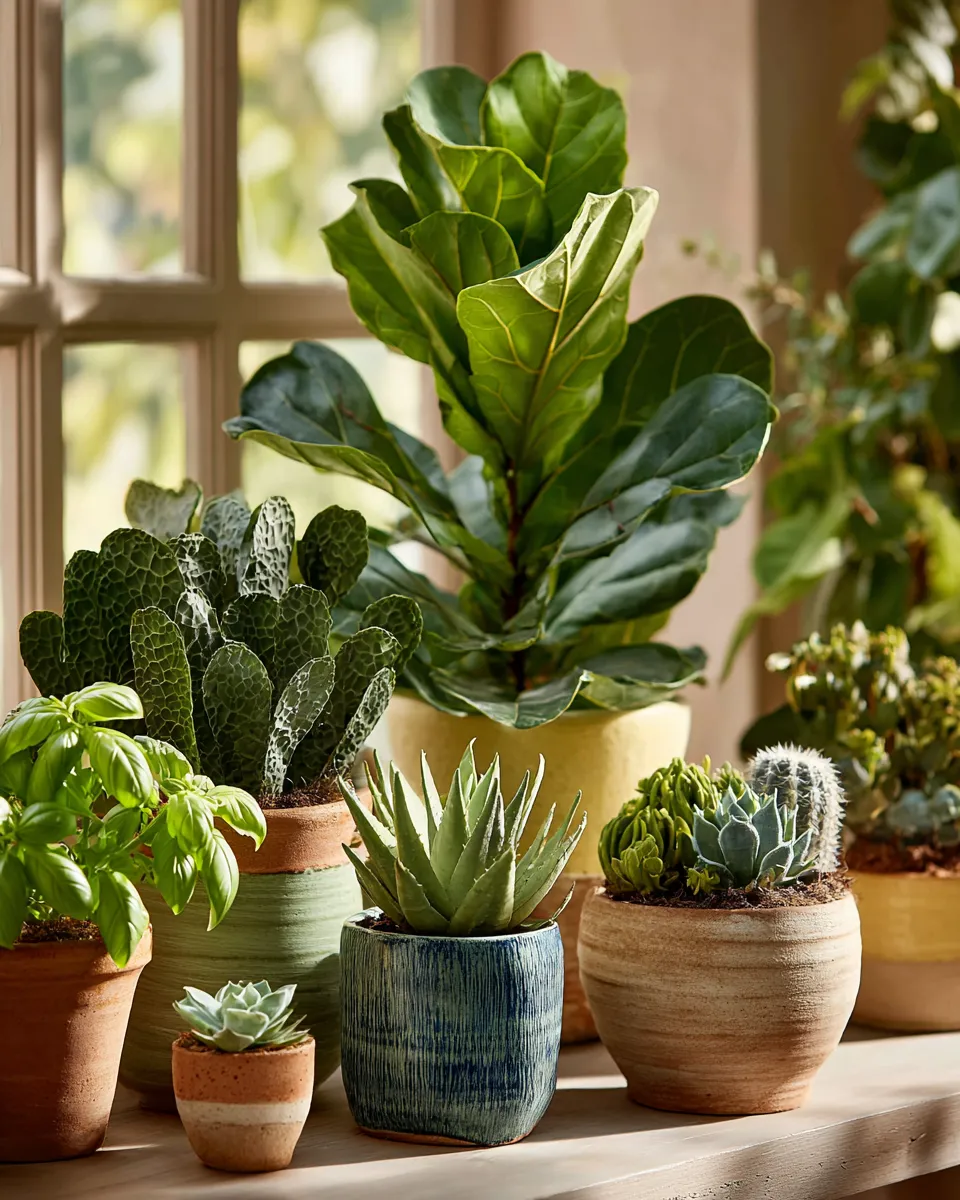 ✨ **Succulents & Cacti:** The ultimate sun-seekers! They store water and need minimal care.