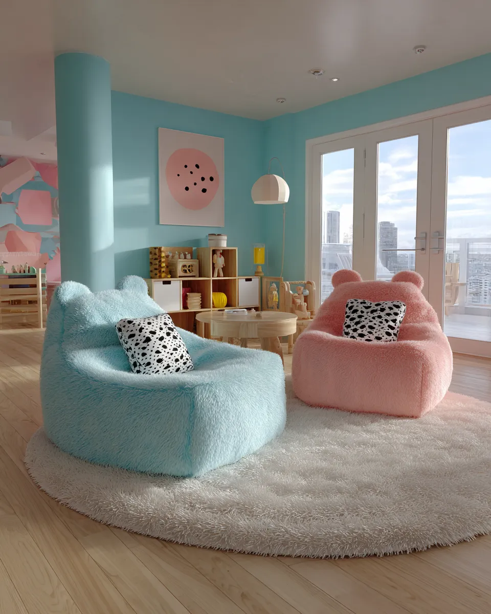 Joyful Contrast: Coral Pink & Teal Blue for a Lively Kid's Corner! 💖💙