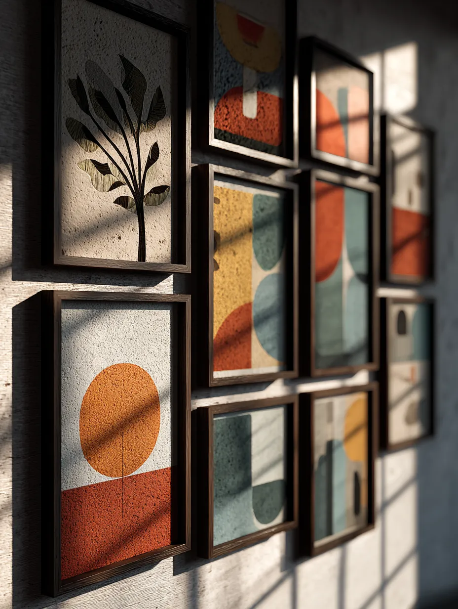 Elevate your walls with iconic mid-century modern art! Geometric patterns, abstract shapes, and nature-inspired motifs are hallmarks of this era. Think bold colors and clean lines. 🎨