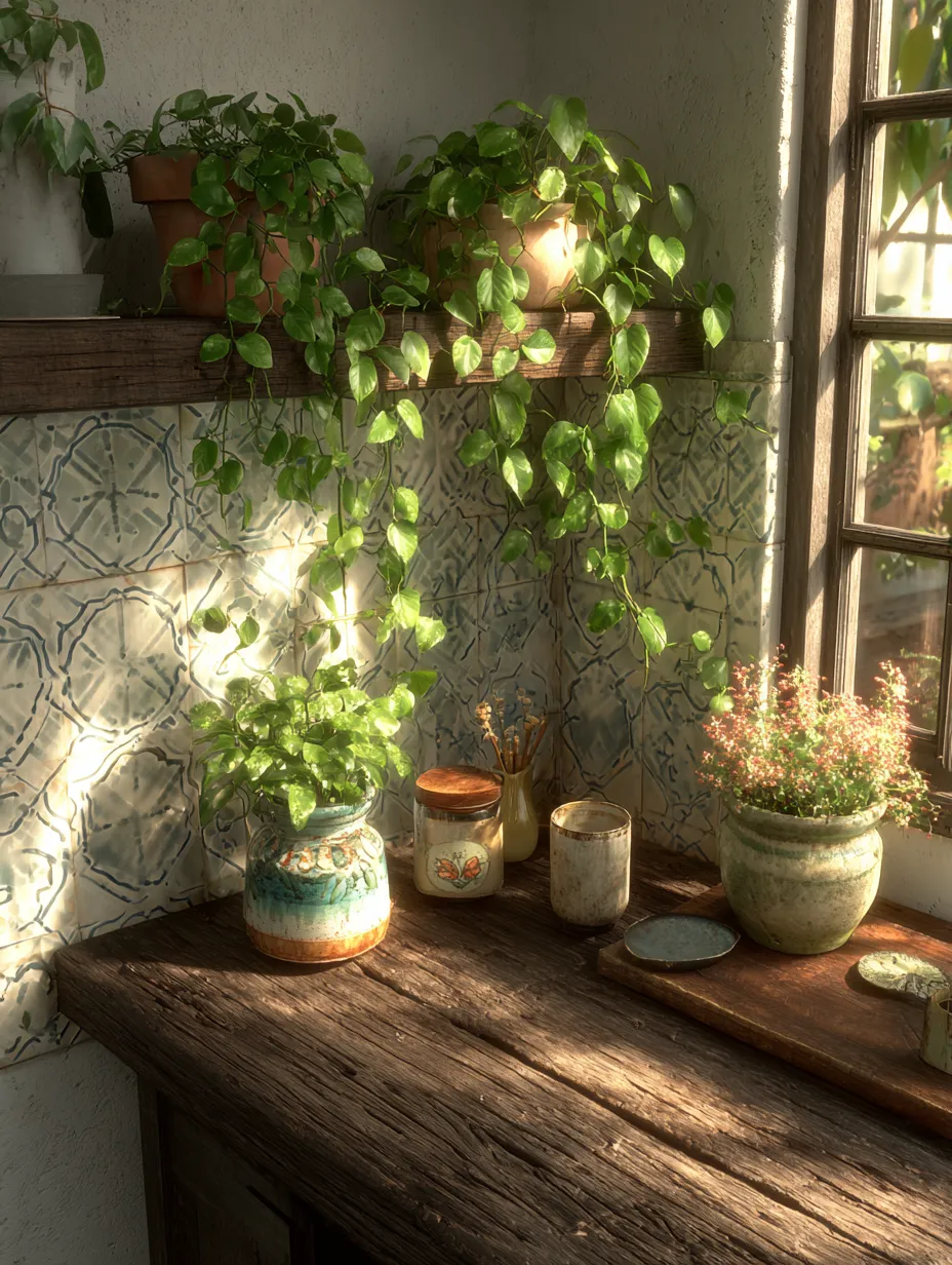 Who says kitchens have to be purely functional? Inject some bohemian personality with lush plants! Hanging planters near windows, small herb gardens on the windowsill, or even a trailing vine on a shelf can bring life and color. Choose colorful pots or natural materials like terracotta and woven baskets to complement the boho aesthetic. This not only brightens the space but also adds a refreshing, organic touch to your culinary adventures. Grow your joy! 🪴