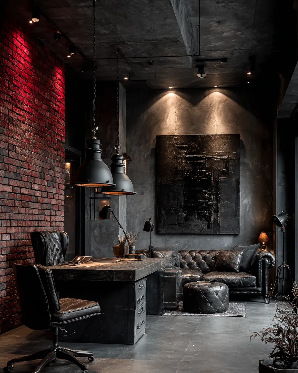 Design a space that fuels your productivity and creativity. Save for your office redesign! 🛠️ #IndustrialIdeas#HomeOfficeIdeas#IndustrialOfficeIdeas#MoodyInteriors#UrbanWorkspace#DesignForProductivity#RawMaterials#InteriorDesignInspo#ModernIndustrial#WorkspaceGoals