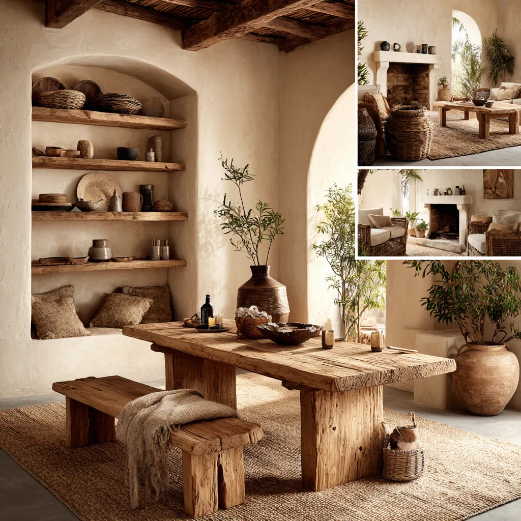* **Furniture with Soul:** Solid wood tables, benches, or bed frames with visible grain.