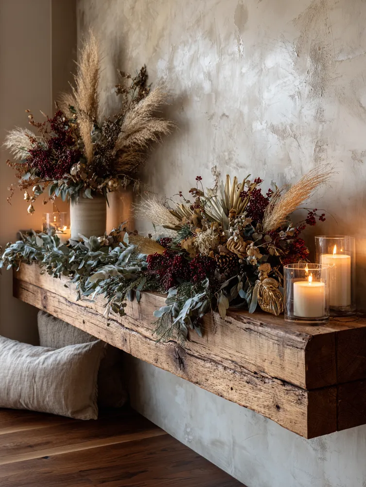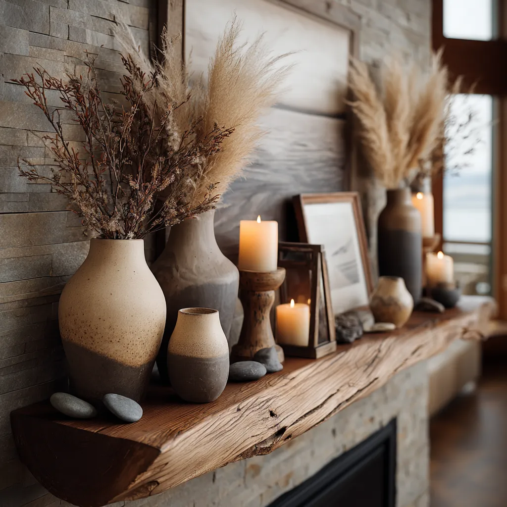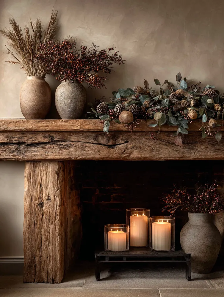 Your fireplace mantel is a canvas for expressing your style! ✨ Let's adorn it with rustic elegance, celebrating natural textures and a grounded aesthetic. It’s about creating a focal point that feels warm, authentic, and full of character.