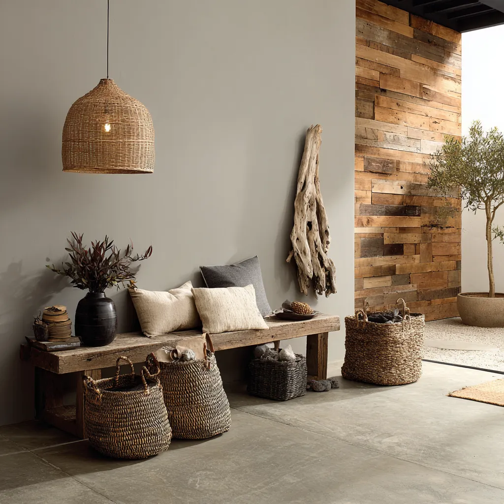 First impressions matter, and your entryway is your home's warm handshake! ✨ Let's create a rustic entryway that welcomes guests with natural beauty, warmth, and a touch of elemental charm. It’s about grounding visitors from the moment they step inside.