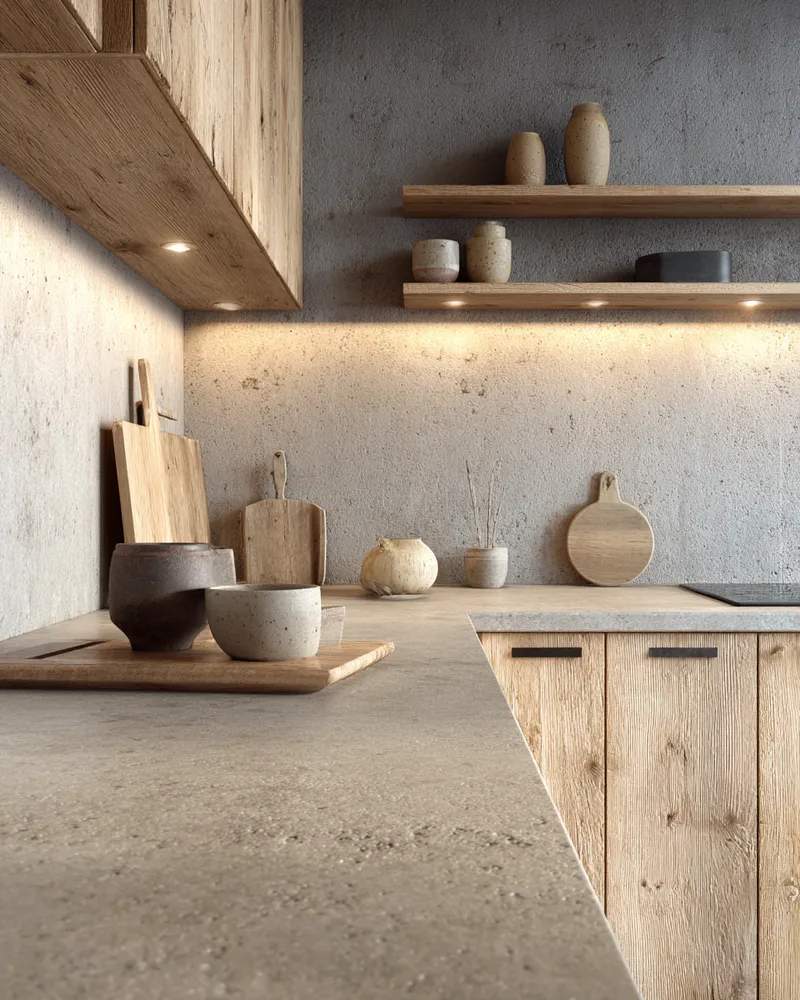* **Raw Wood Cabinetry:** Embrace the natural grain and warmth of solid wood.