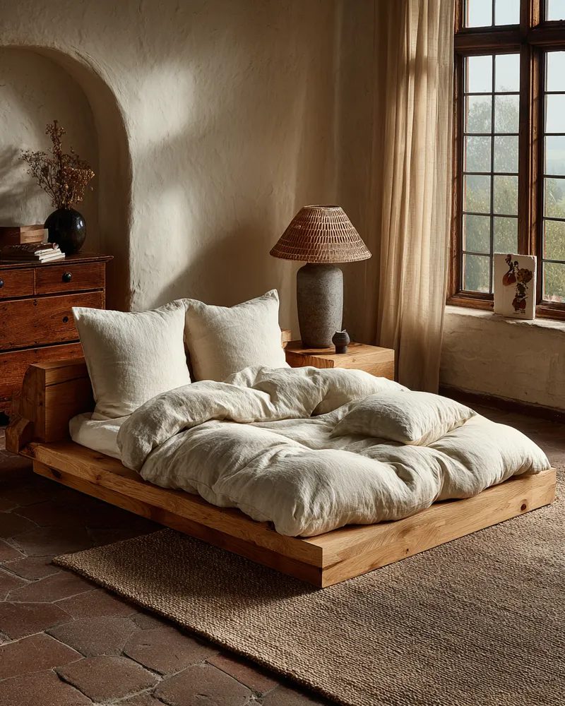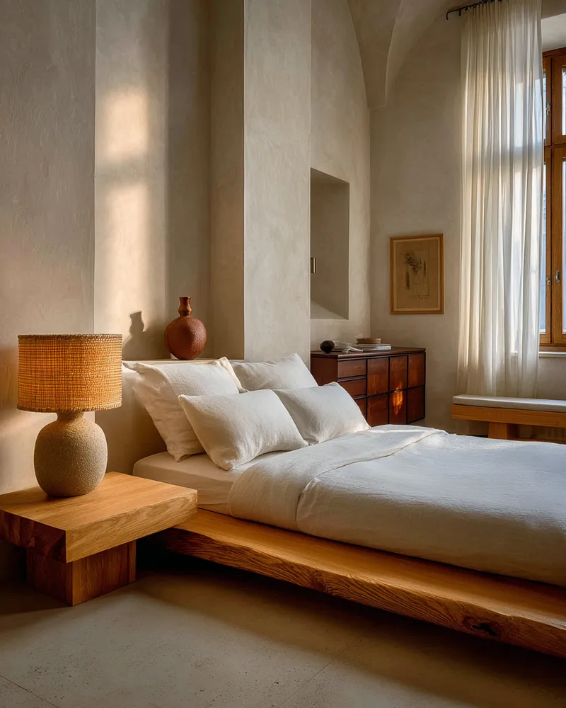 My Secret to a Serene Japandi Bedroom: Natural Light & Wood 🪵✨
