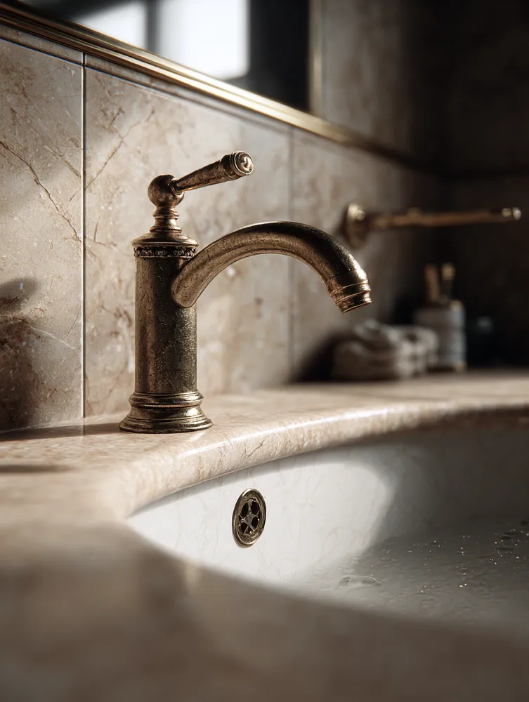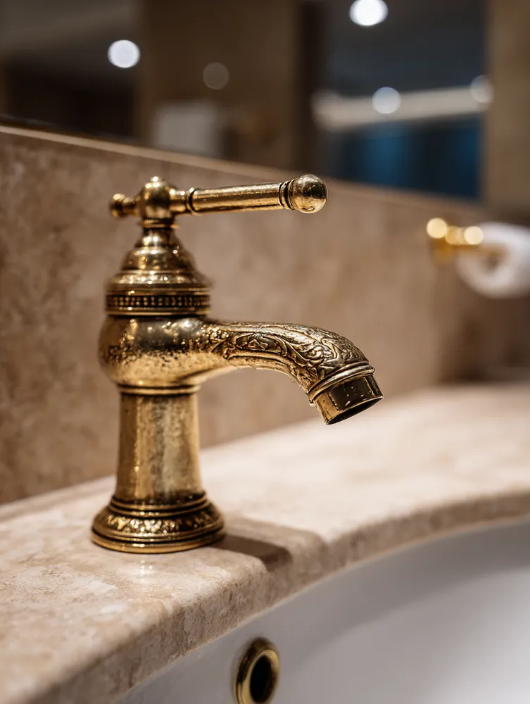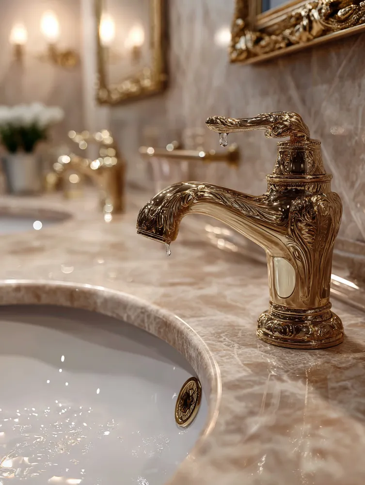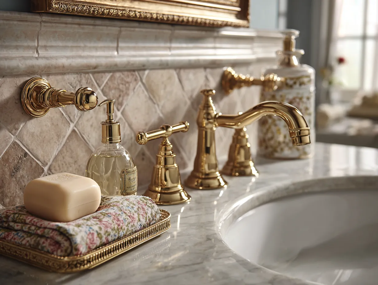 ✨ Gilded Garden: Brass Details in a Floral-Inspired Bathroom! 🌸