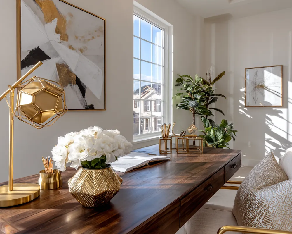 ✨ Golden Botanicals: Brass & Bloom in Your Home Office Decor! 🌸