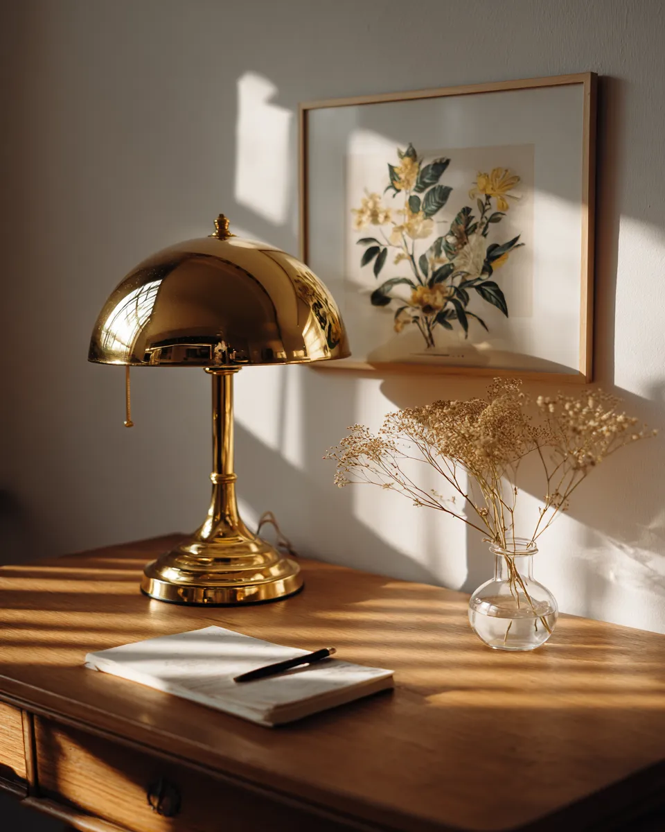✨ Golden Botanicals: Brass & Bloom in Your Home Office Decor! 🌸