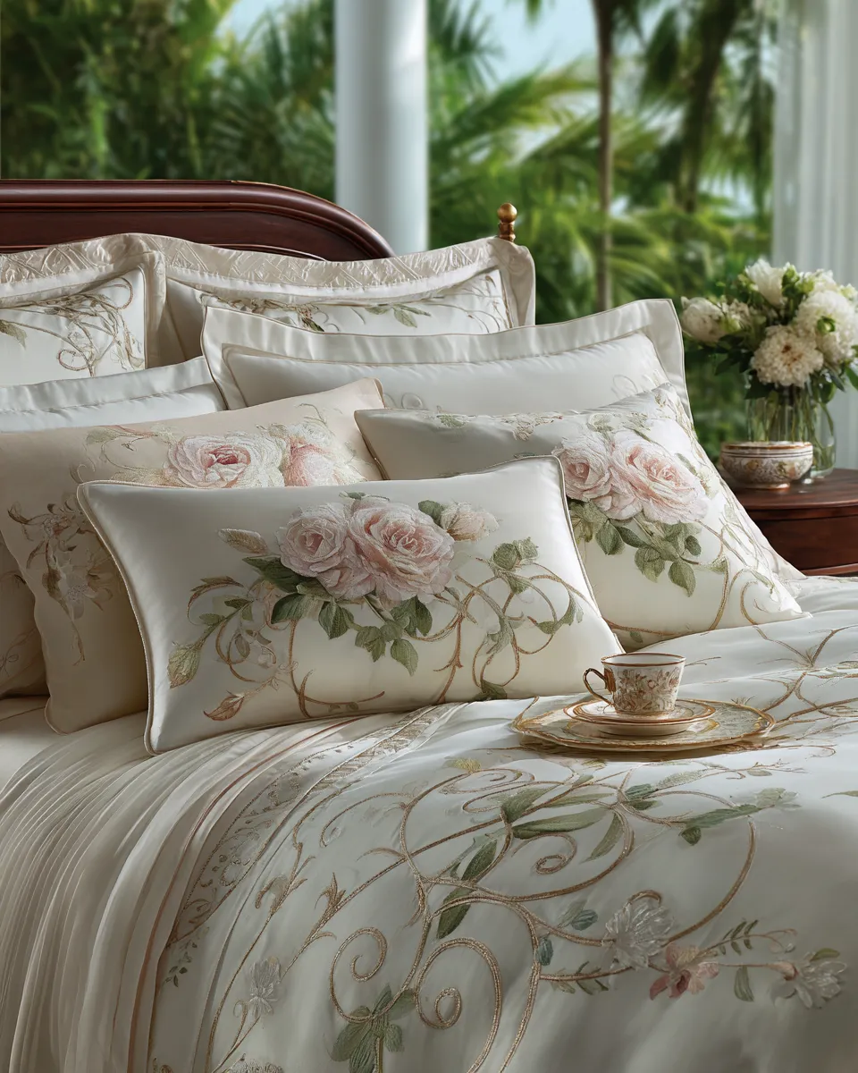 Drift off in artistic comfort. Save this for your decorative bedding inspiration! 💖 #ArtNouveauBeddingIdeas#DecorativeBedroom#ElegantBedding#BedroomInspo#ArtNouveauStyle#InteriorTextiles#BotanicalDecor#Dreamscape#ArtNouveauAesthetics#LuxeLinens