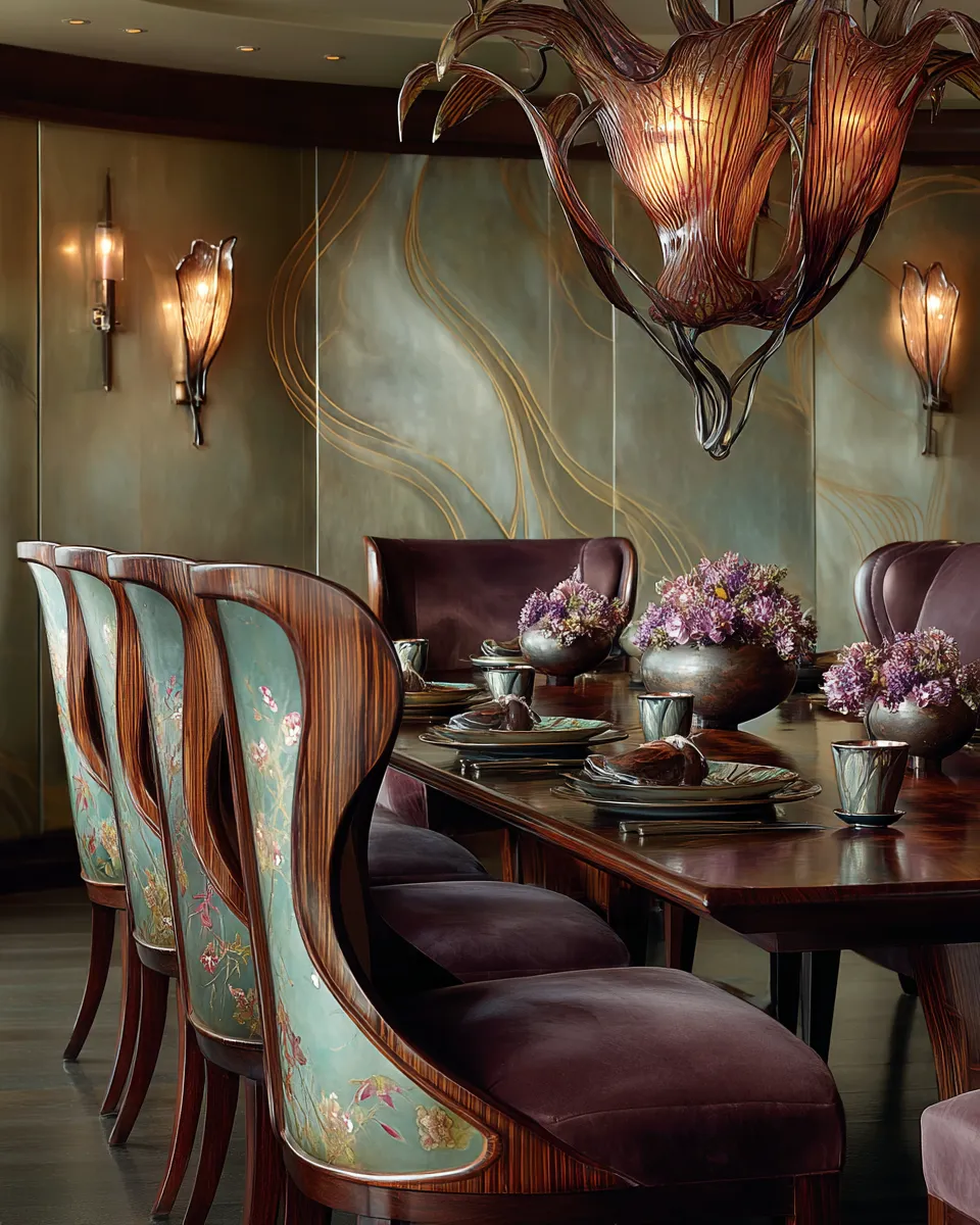 🦢 Swirls & Serenity: Art Nouveau Dining Rooms for Elegant Gatherings ✨