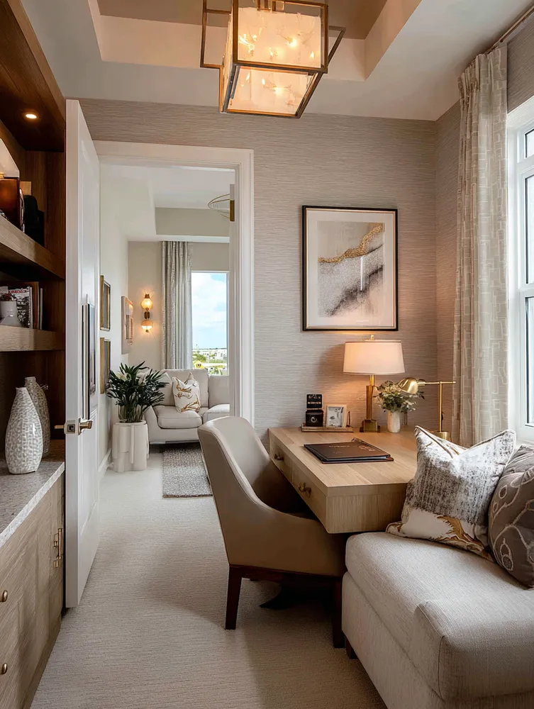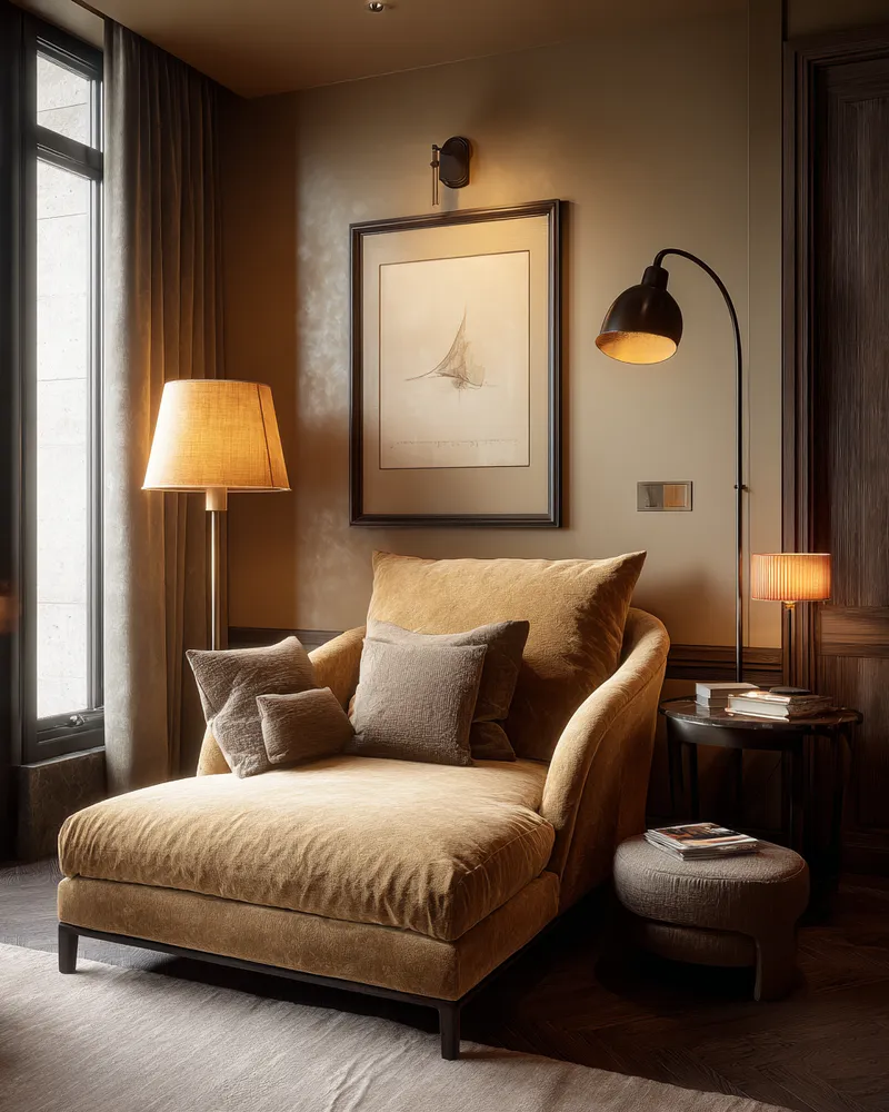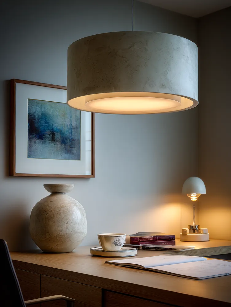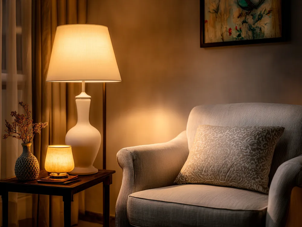 * **Directional Lamps:** Small, movable lamps can be angled to catch the details of a sculpture or painting.