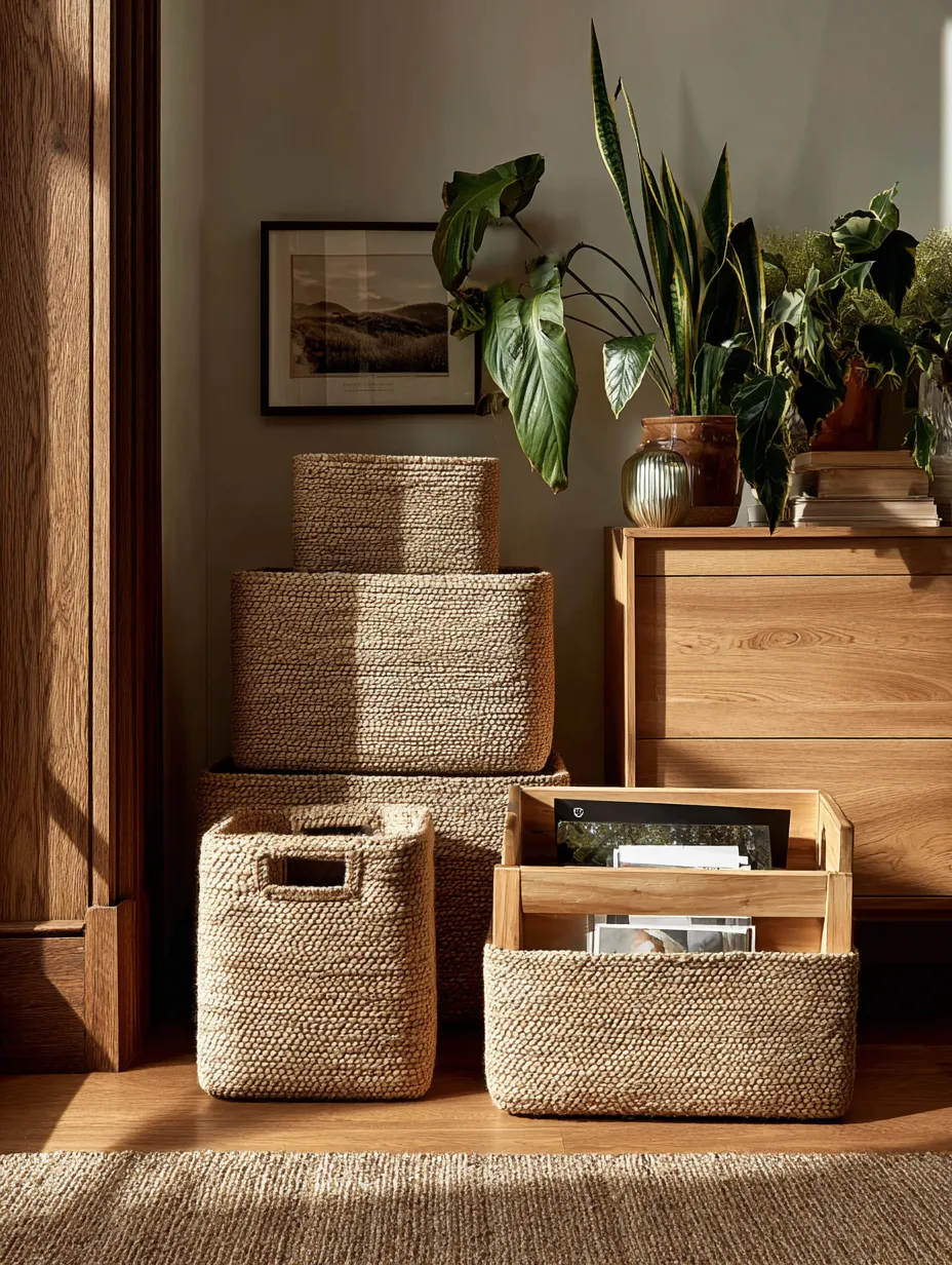 * **Woven Baskets:** Perfect for linens, throws, or toys. 🧺
