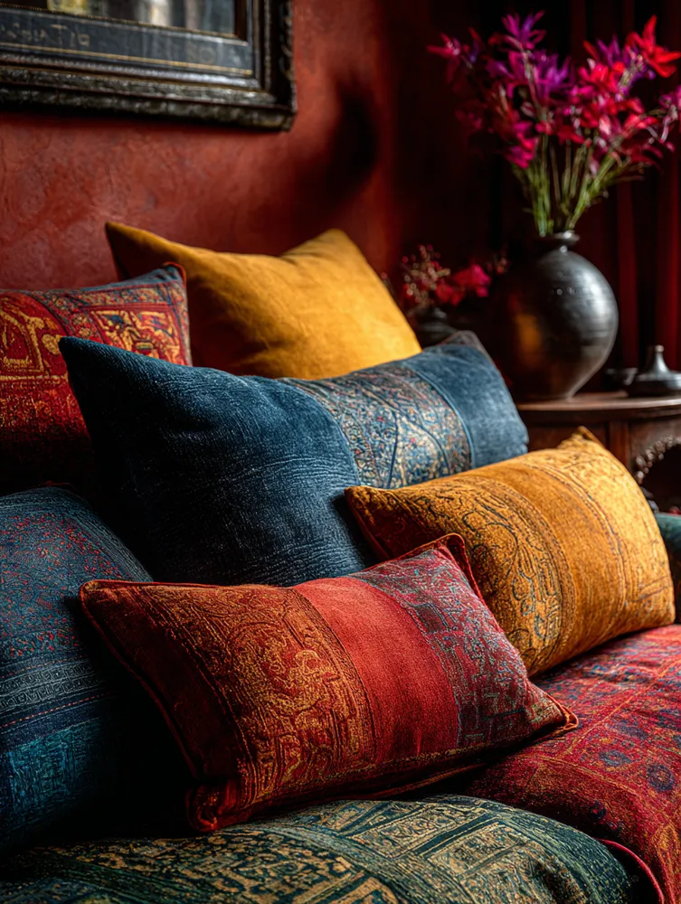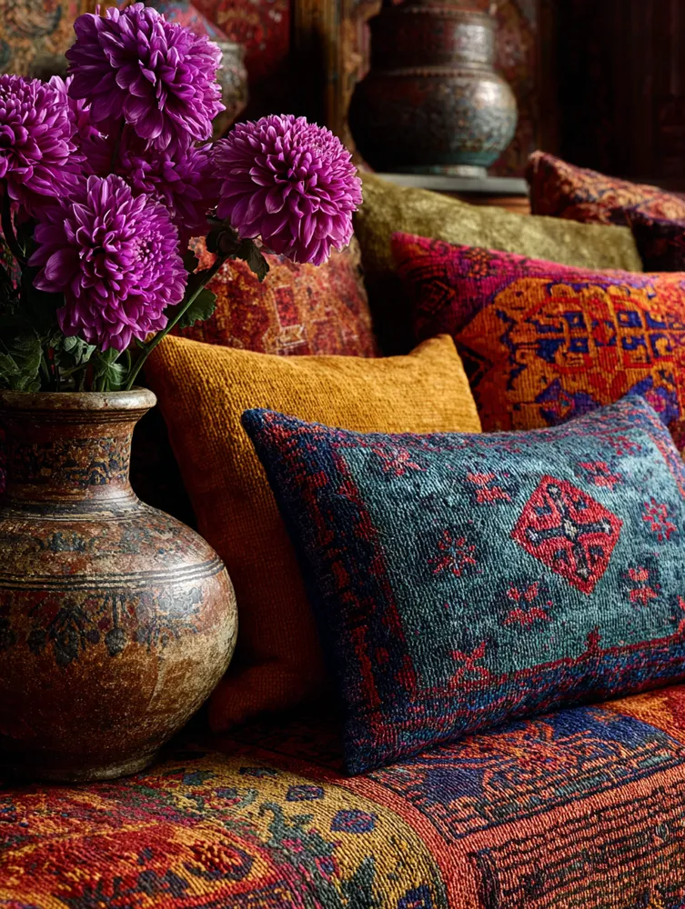 Pillows are your bohemian superpower! They're the easiest way to inject color, pattern, and texture into any space. 🌺 Mix and match is the name of the game. Think Kilim prints, Moroccan pom-poms, embroidered motifs, and rich velvets. Don't be afraid to combine different sizes and shapes. Layer them on your sofa, armchairs, or even on the floor for extra seating. They're perfect for telling your story through vibrant hues and global patterns. What's your go-to pillow style? Save for your pillow paradise inspo! ✨ #BohoPillowIdeas#CushionDecorIdeas#MaximalistPillows#TextileCushions#EclecticPillows#BohoDecorTips#ColorfulHome#HomeTextiles#BohoStyle#PillowInspiration