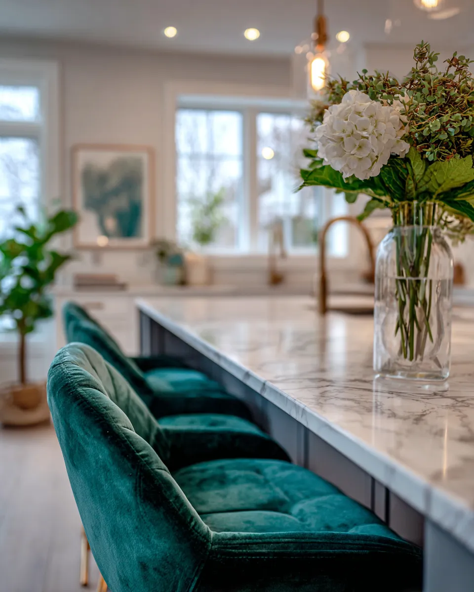 Velvet Stools: Chic Seating for Your Kitchen Island! 🍸