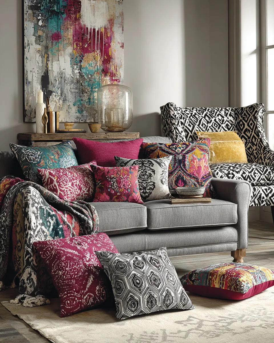 Daring to mix and match is what Eclectic Ecstasy is all about! One of my favorite ways to create personal and unexpected spaces is by pairing bold patterns with solid neutrals. 💎 Start with a neutral base – think walls, sofas, or large rugs. Then, introduce patterns through cushions, throws, art, or even wallpaper on an accent wall. The trick is to choose patterns that share a common color, or to ensure your neutral base ties them all together. This creates visual interest without overwhelming the space. Save for your creatively designed home! ✨ #EclecticDecorIdeas#PatternMixingIdeas#BoldPatternsIdeas#NeutralDecorIdeas#LivingRoomPatternIdeas#InteriorDesign#HomeDecorInspo#CreativeSpaces#MixAndMatchDecor#PersonalStyle