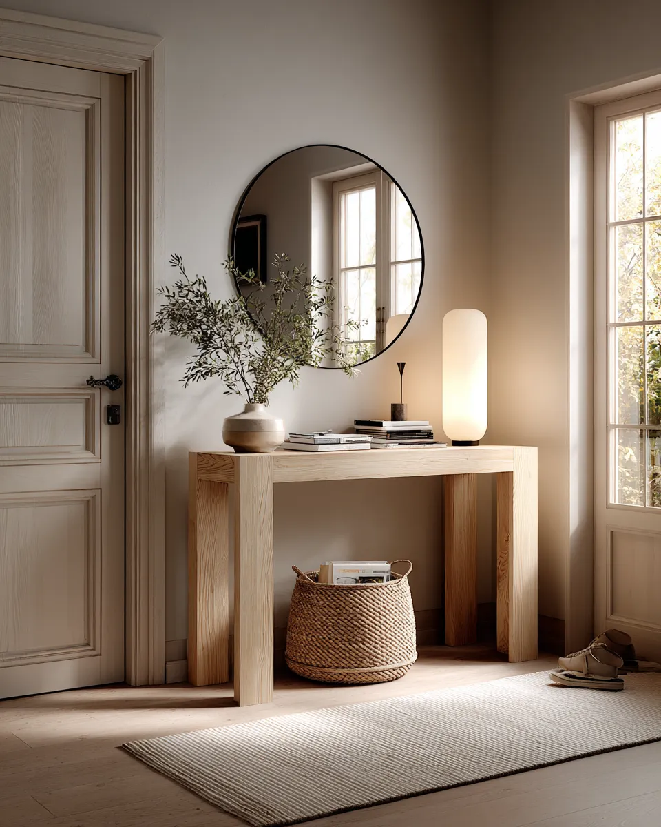 * **Minimalist Console Table:** Choose one in light wood or a simple painted finish.