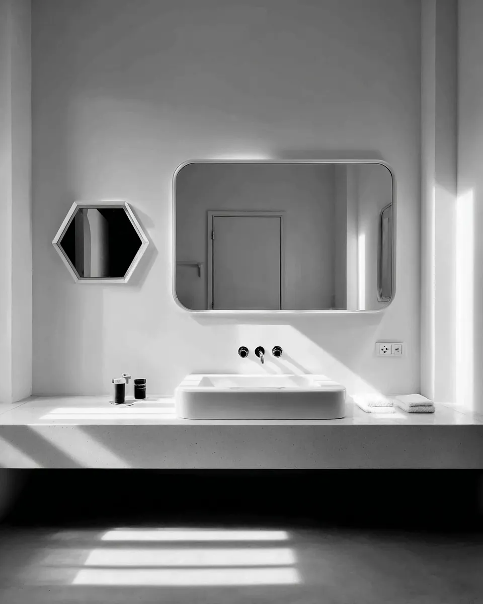 The Art of Balance: Geometric Bathroom Mirror Ideas 📐✨