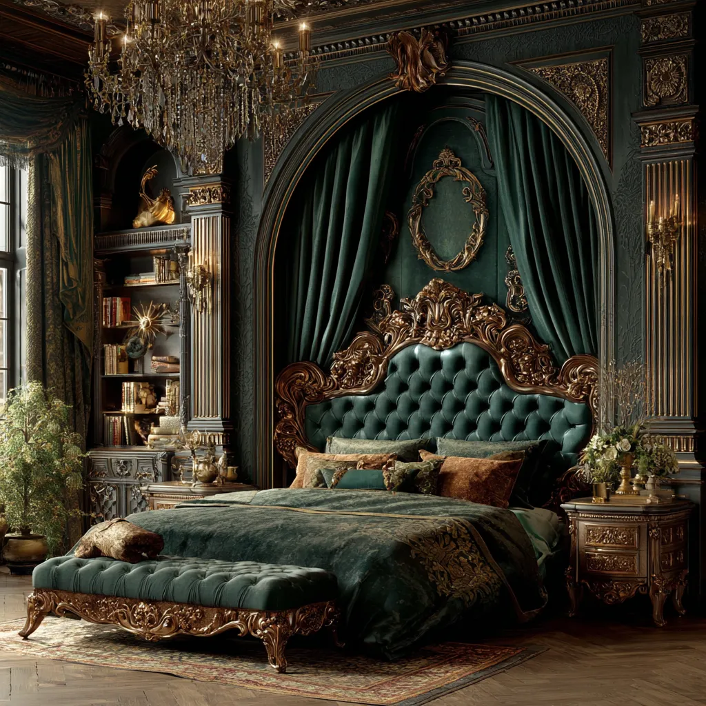 Elevate your sleep sanctuary to a royal chamber with the quintessential Rococo tufted headboard! Think deep, sumptuous velvet in jewel tones like emerald, sapphire, or ruby, meticulously diamond-tufted for an extra touch of grandeur. 👑 This isn't just furniture; it's a statement of luxurious comfort. The soft, padded surface invites you to relax, while the elaborate stitching whispers tales of French aristocracy. Imagine it paired with ornate bedside tables and rich drapery for the ultimate Baroque boudoir. Save this for a touch of plush paradise! 🌙 #RococoBedroomIdeas#TuftedHeadboard#VelvetInteriors#LuxuryBedroom#BaroqueStyle#BedroomDesignIdeas#FrenchBedroom#OpulentDesign#HeadboardIdeas#DreamBedroom