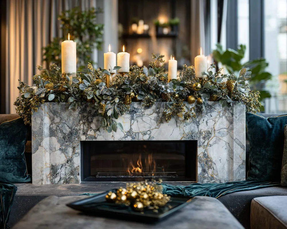 Marble Mantelpiece Masterpiece: Elevate Your Holiday Hearth! 🔥⚪