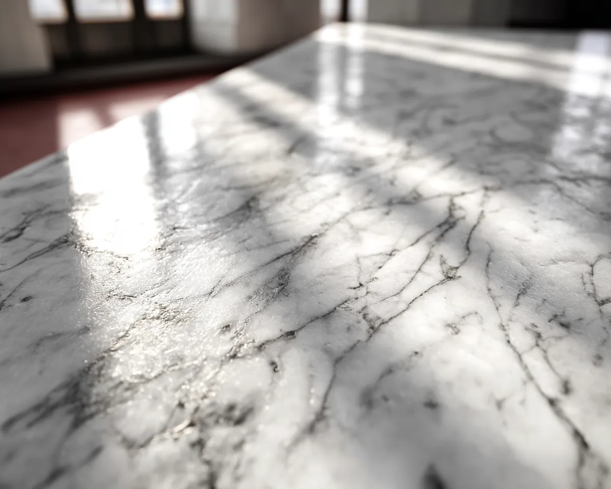 Embrace timeless sophistication with Carrara marble. ⚪ This iconic Italian marble is celebrated for its soft, feathery grey veining against a pure white background, offering understated elegance.