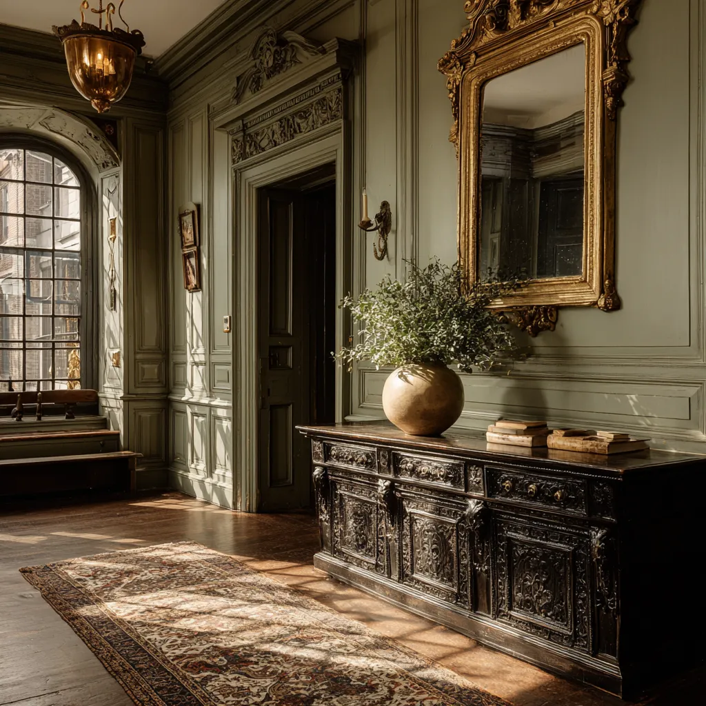 * **Statement lighting:** An antique chandelier or unique pendant.
