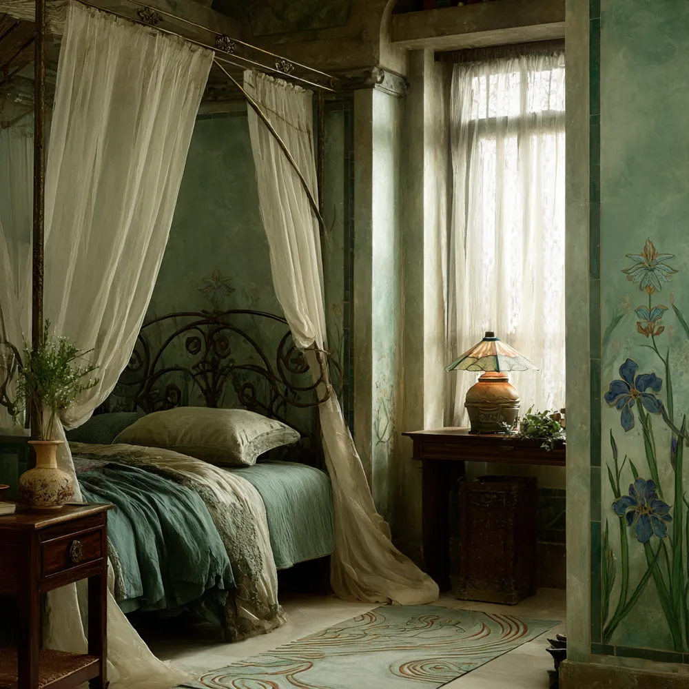 Serene Slumber: Art Nouveau Bedroom Tranquility ✨
