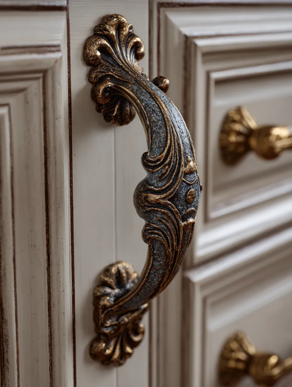 * **Ornate Pulls:** Look for handles with subtle embellishments, like acanthus leaves or geometric patterns.