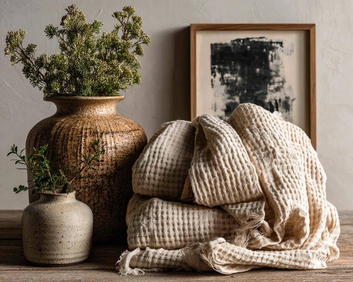 * **Natural Fiber Textiles:** Linen throw pillows, wool blankets.