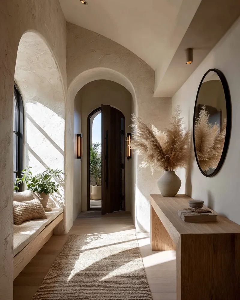 First impressions matter, especially in a Japandi home! ✨ Let's create an entryway that whispers tranquility and sets the tone for your entire living space. Think minimalist yet inviting. A beautiful wooden bench, perhaps with subtle storage, is key. Add a simple ikebana floral arrangement and a large mirror to bounce natural light. Keep clutter at bay with a woven basket for shoes or mail. This welcoming ritual embraces the Japanese art of slowing down and the Scandinavian love for natural elements. Save this for your dream home inspo! 🤍 #EntrywayIdeas#JapandiIdeas#MinimalistDecorIdeas#HomeDecorIdeas#SereneSpacesIdeas#Japandi#Minimalism#HomeInspo#InteriorStyling#NaturalMaterials