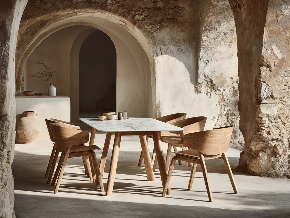 Minimalist Dining Room: Marble and Light Wood Fusion 🪵🍽️