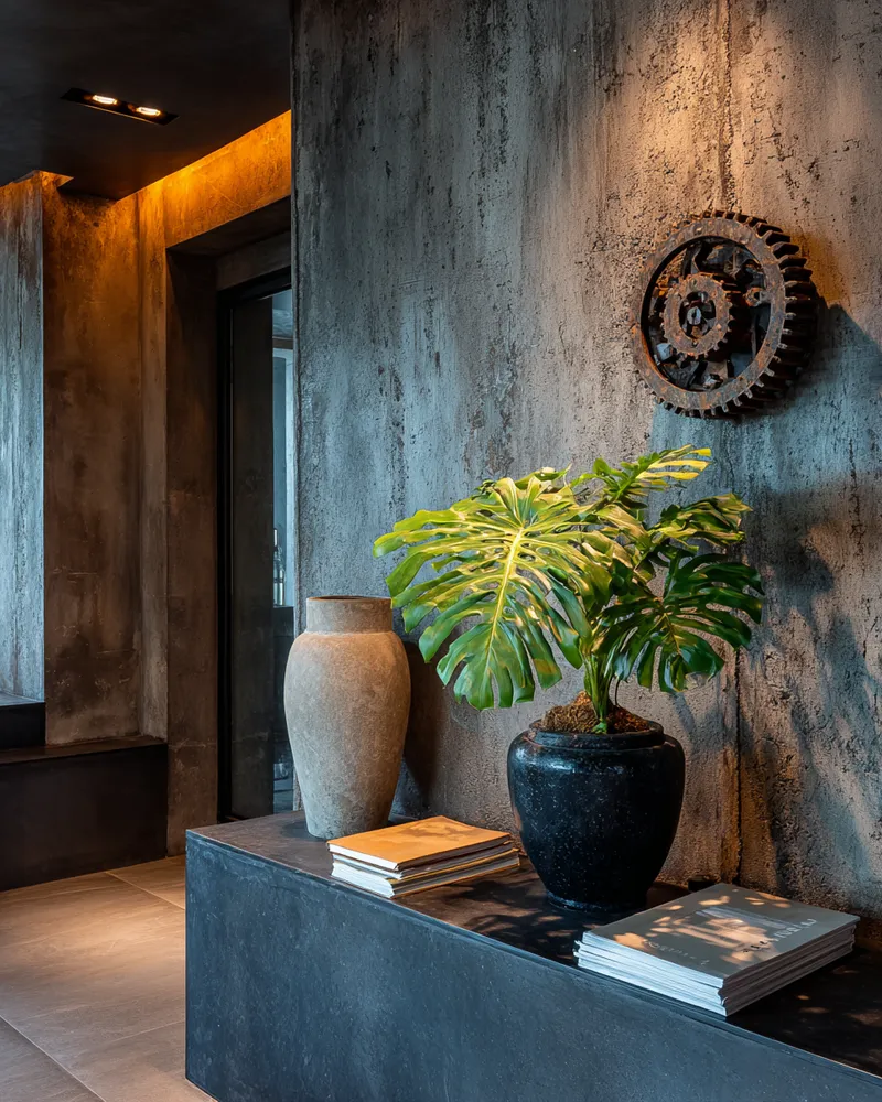 Industrial Luxe Accents: Metallics & Concrete Details 🖤