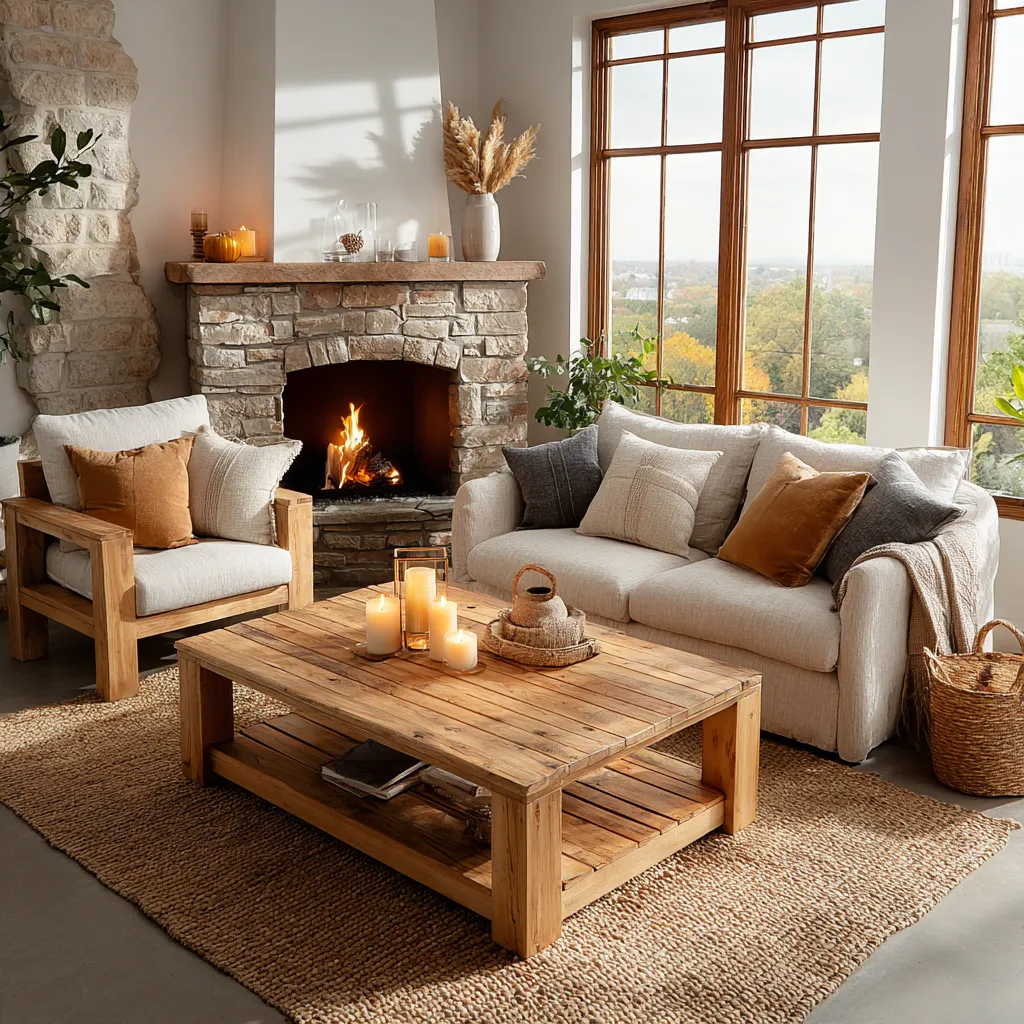 Grounded Living Room: Natural Wood & Earthy Textures 🪵🧵