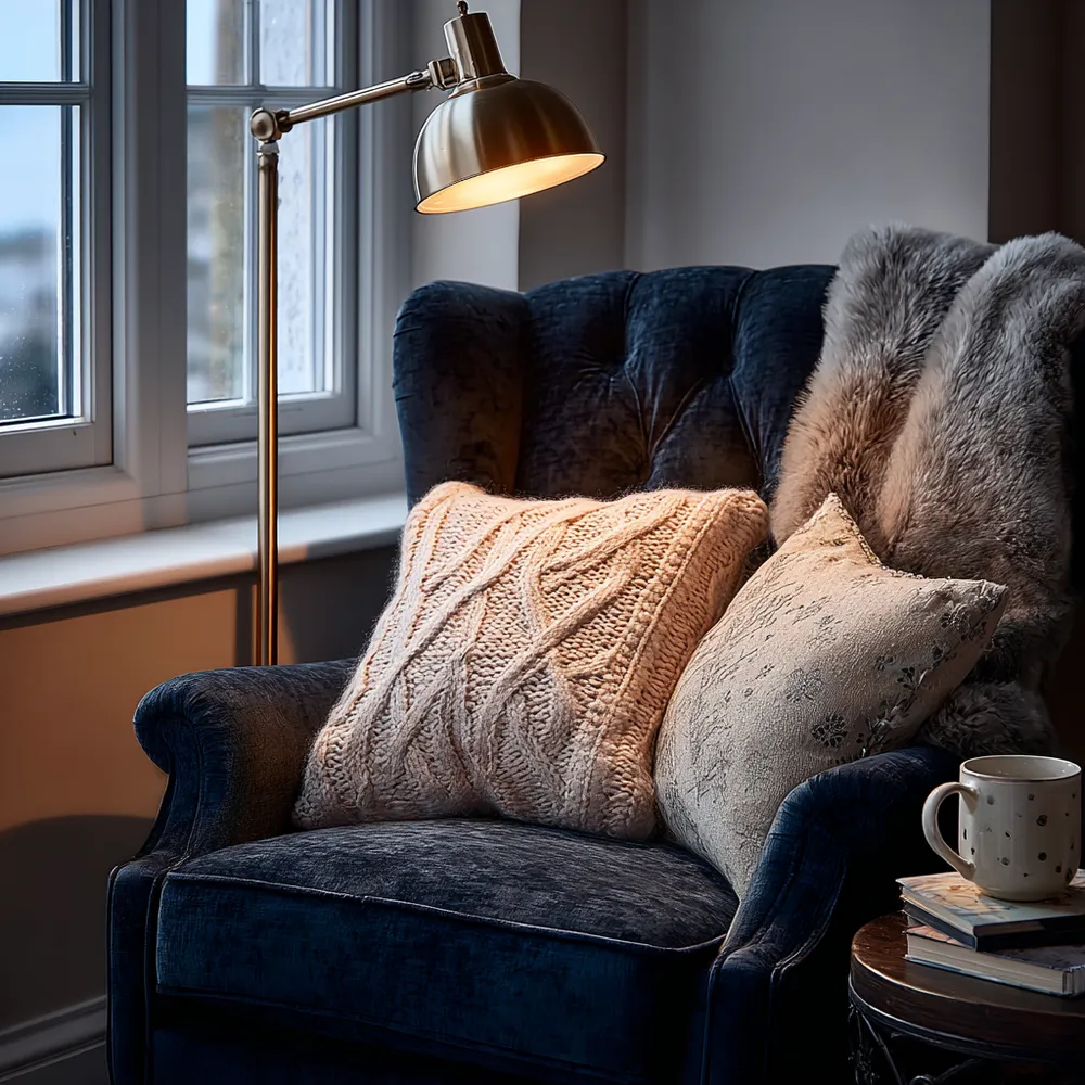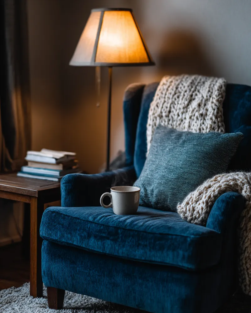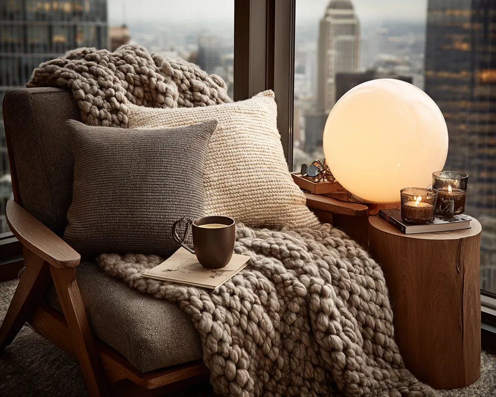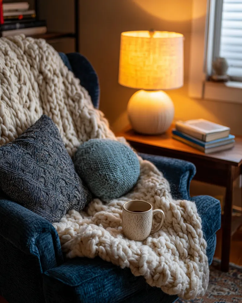 * Warm, layered blankets and pillows. ☕