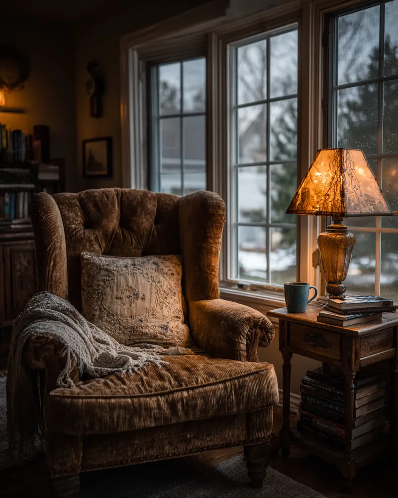 Embrace the hygge of the Pacific Northwest and carve out your personal sanctuary. Save this for your ultimate relaxation zone inspo! #ReadingNookIdeas#PNWReadingNook#CozyCornerIdeas#WoodAccents#WarmTextiles#HomeLibrary#InteriorDesign#RelaxationStation#BookLover#HyggeHome