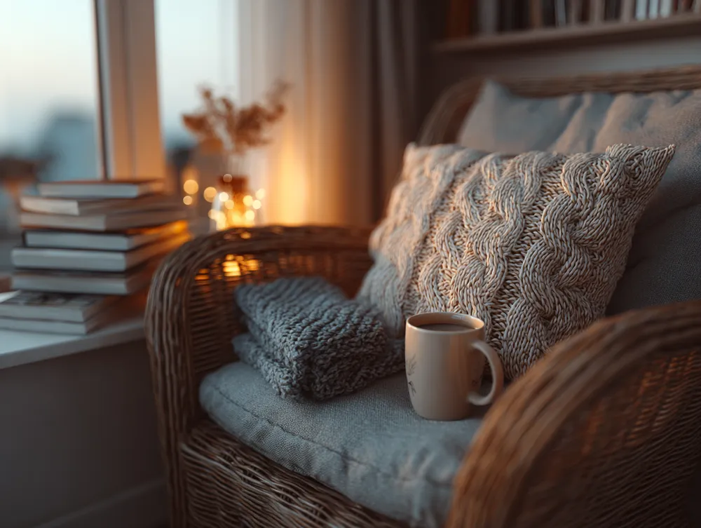 * Layered blankets, chunky knits, and soft pillows. ☕