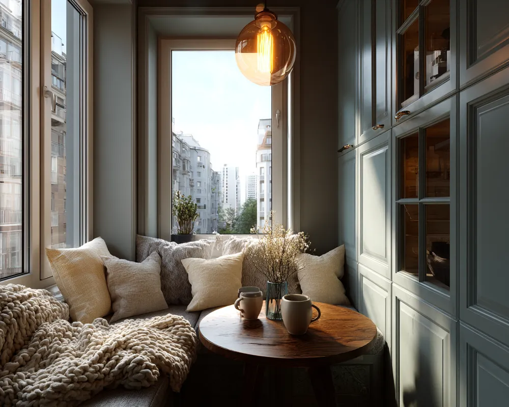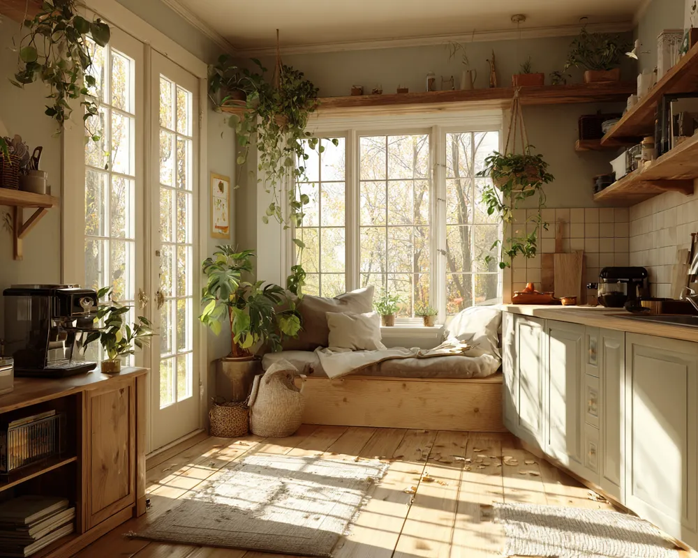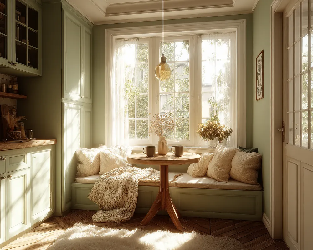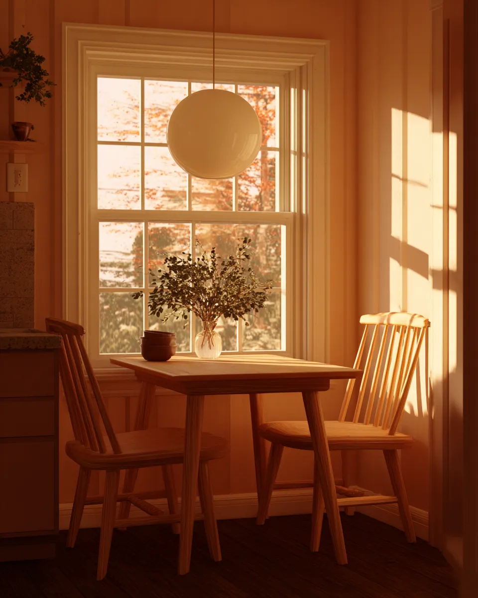 Design a PNW-inspired kitchen nook that feels like a warm hug! The key is natural wood elements and soft, ambient lighting to create a cozy dining spot. 🪵✨